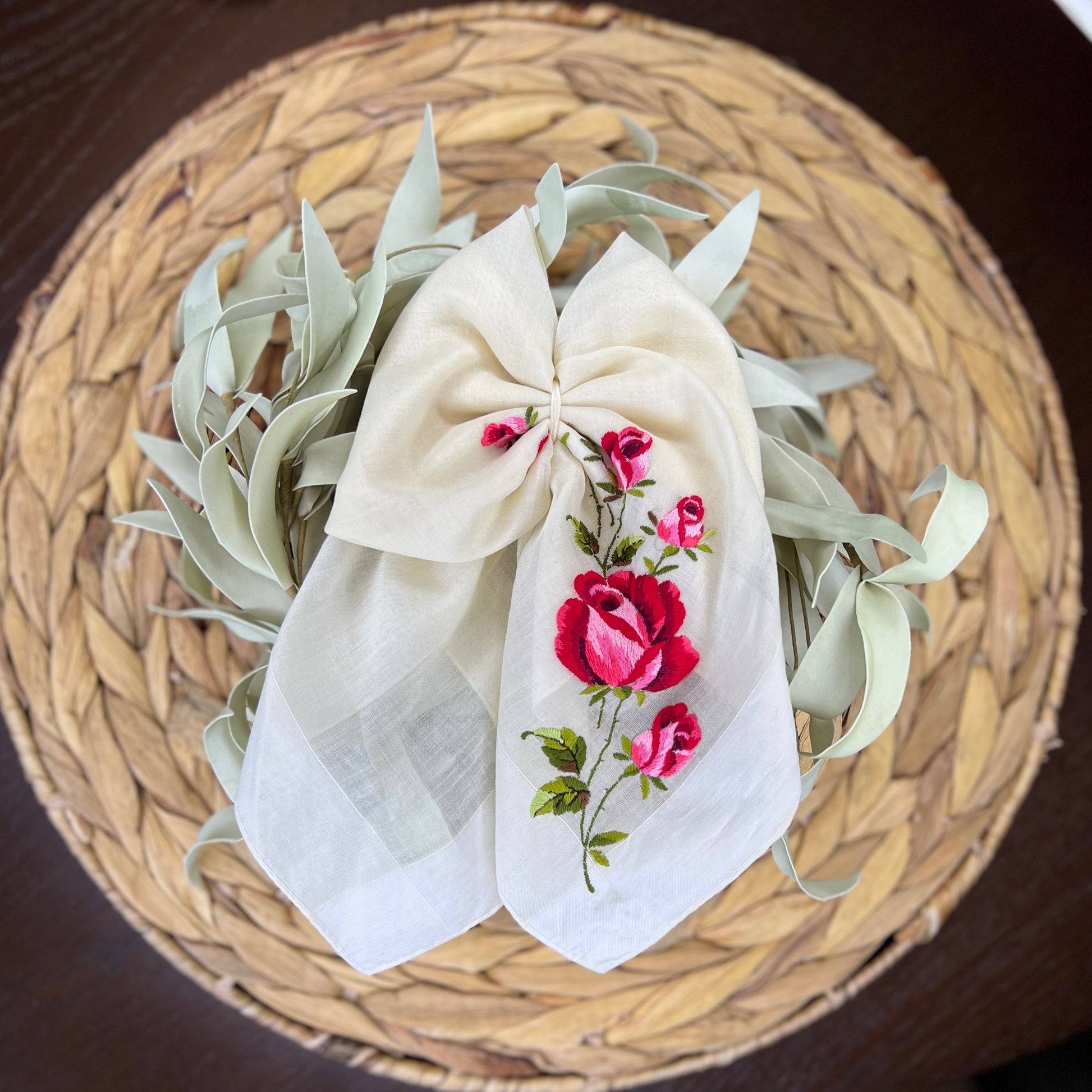 These bows are handmade using vintage materials and therefore may have imperfections.
